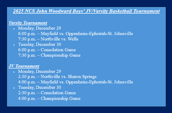 2025 NCS John Woodward Boys’ JV/Varsity Basketball Tournament Dec. 29-30