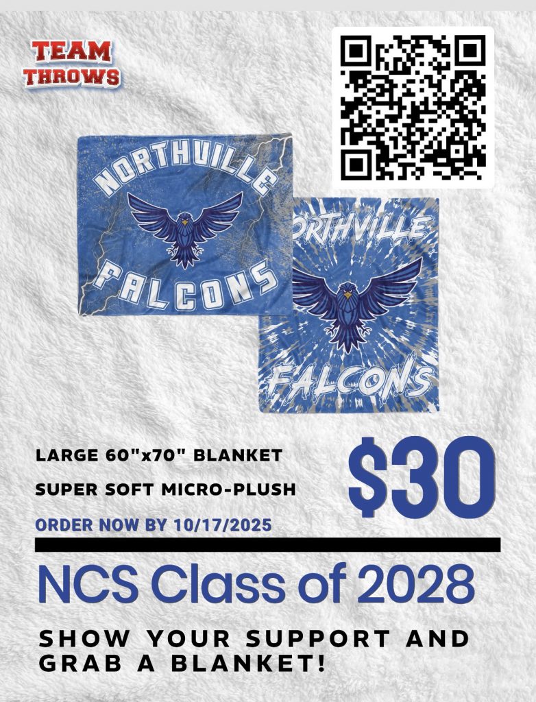 The Class of 2028 is selling Northville Falcons blankets through Oct. 17. A Falcon blanket would be a great holiday gift; thank you for your support!